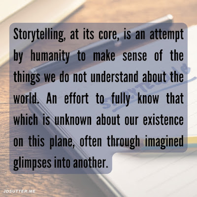 Several months ago, I was pondering, what is it about stories that we as humans love so much? Why are we drawn to storytelling? And I just find thoughts like that very interesting. And I like to break them down and look at all of the possibilities. And as a Christian, I think that part of it is that it's coded into us, into our DNA, by God. I think that is a big part of it, but I think there's more to it than that too. You know, humans are innately curious. And so I think there are a lot of different things, a lot of different factors. But I think there is a core reason behind all of those and so this is what I came up with: "Storytelling, at its core, is an attempt by humanity to make sense of the things we do not understand about the world. An effort to fully know that which is unknown about our existence on this plane, often through imagined glimpses into another."